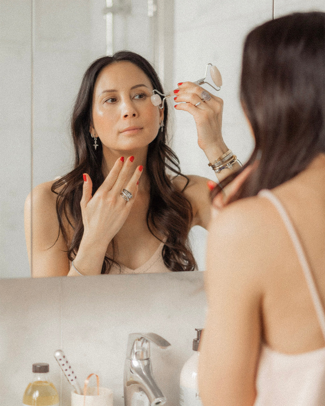 Utilisez le DuoRoller visage en quartz rose pour détendre les muscles, raffermir la peau, lisser les marques du temps et corriger les rides d’expression. La pierre rafraîchit, détend les muscles et resserre les pores.